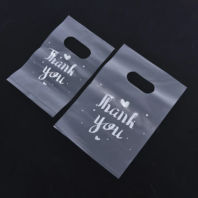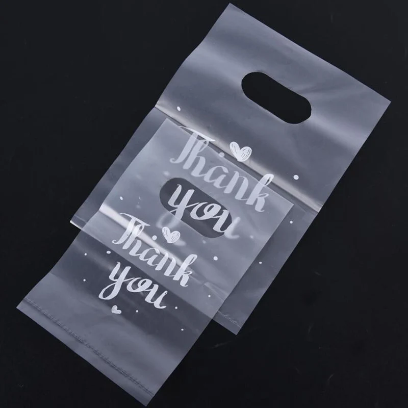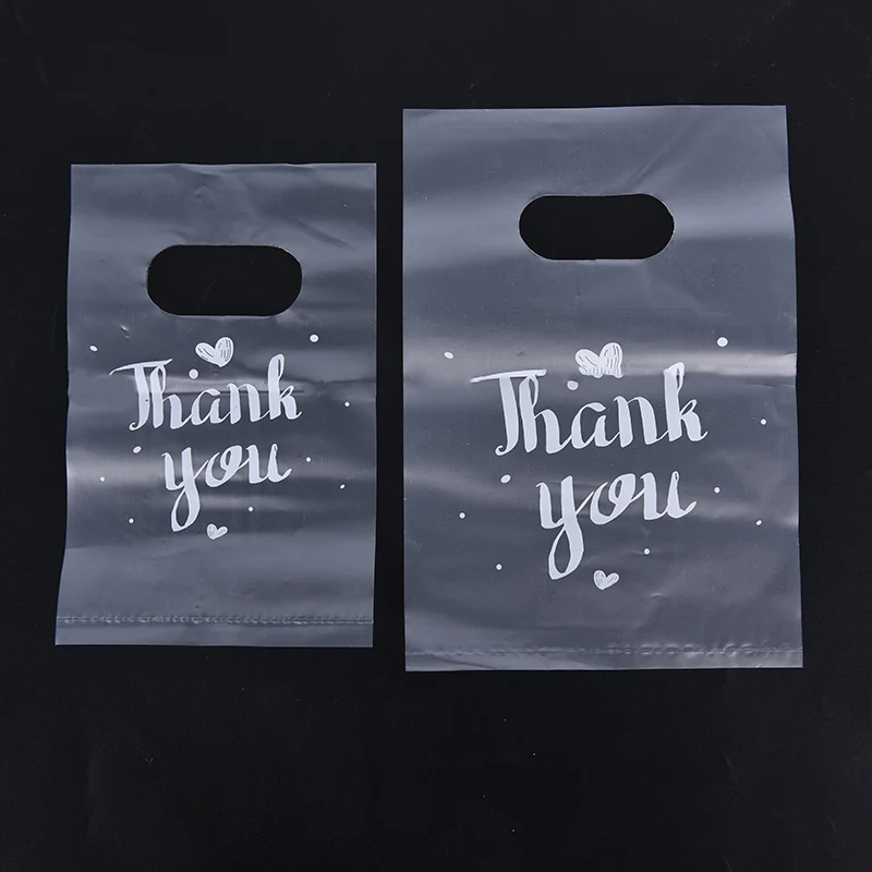 100Pcs Mini Thank you Plastic Gift Bags Wedding Candy Bags Shopping Carrier Bags